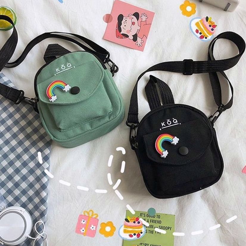 La polyvalence du mini sac à bandoulière coloré motif arc-en-ciel