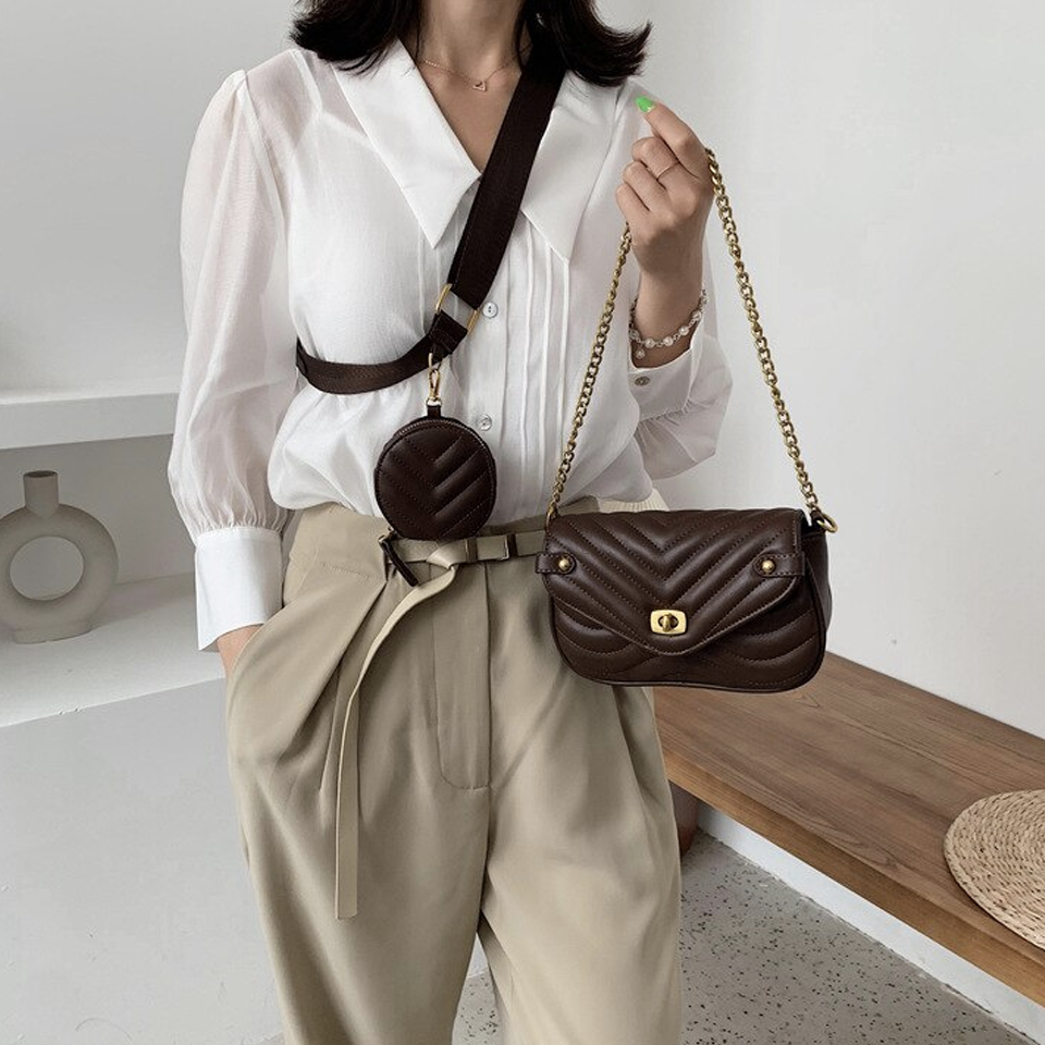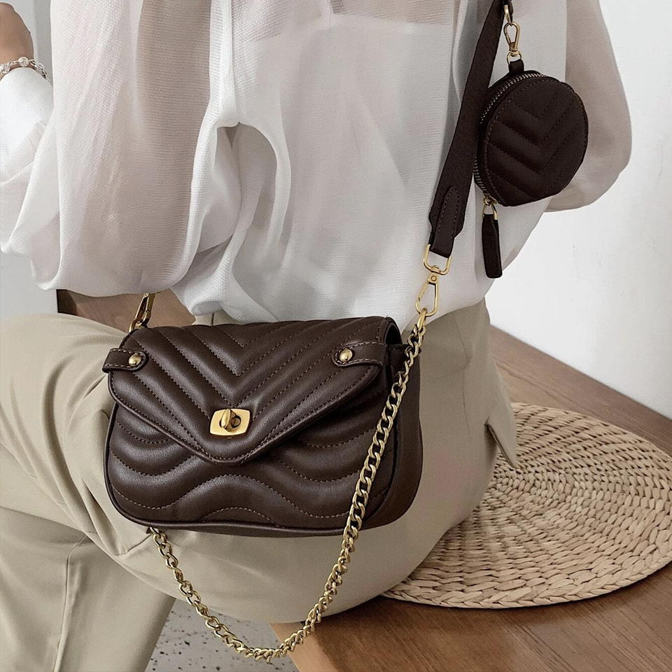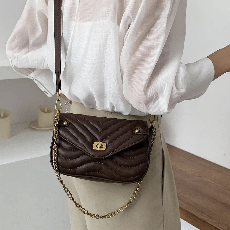 Petit sac bandoulière en cuir synthétique matelassé marron pour un style chic