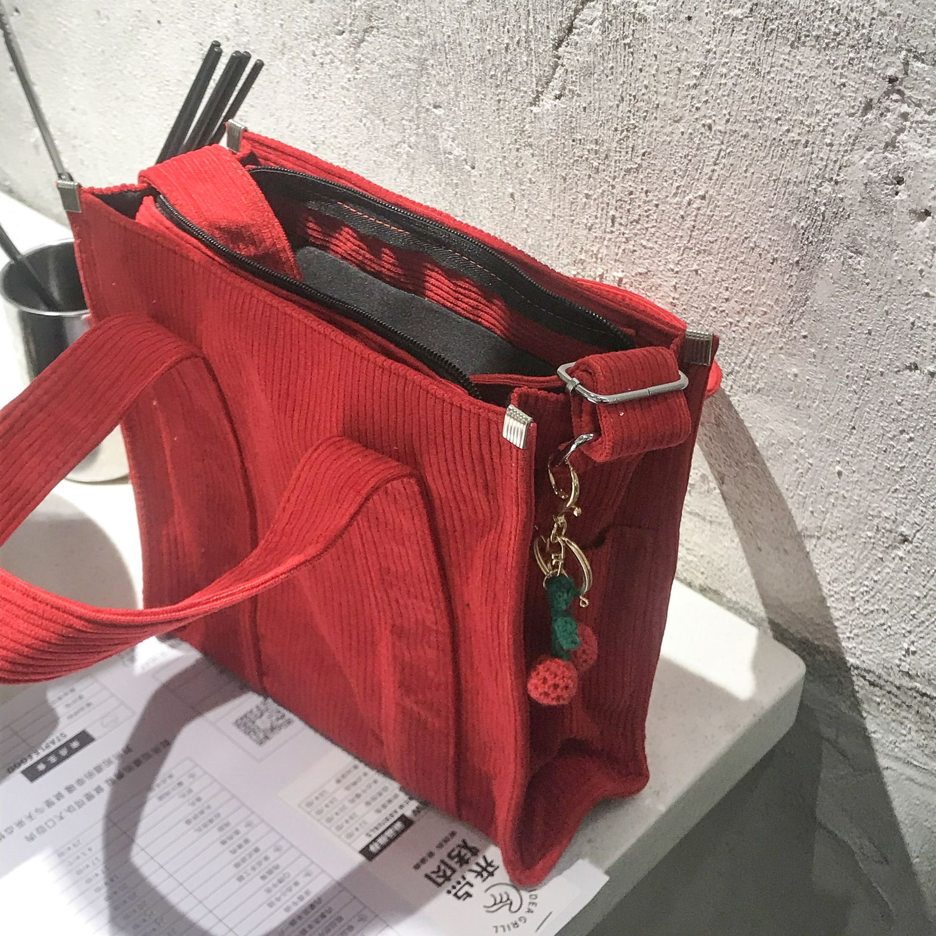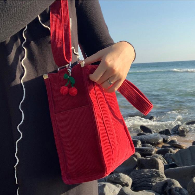 Petit Sac cabas bandoulière en velours côtelé pour un style chic