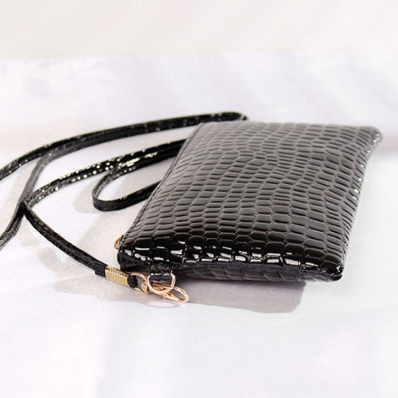 Portez le petit sac crocodile noir en bandoulière pour toutes vos sorties