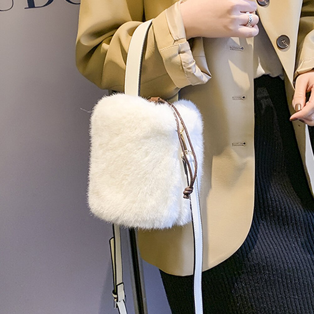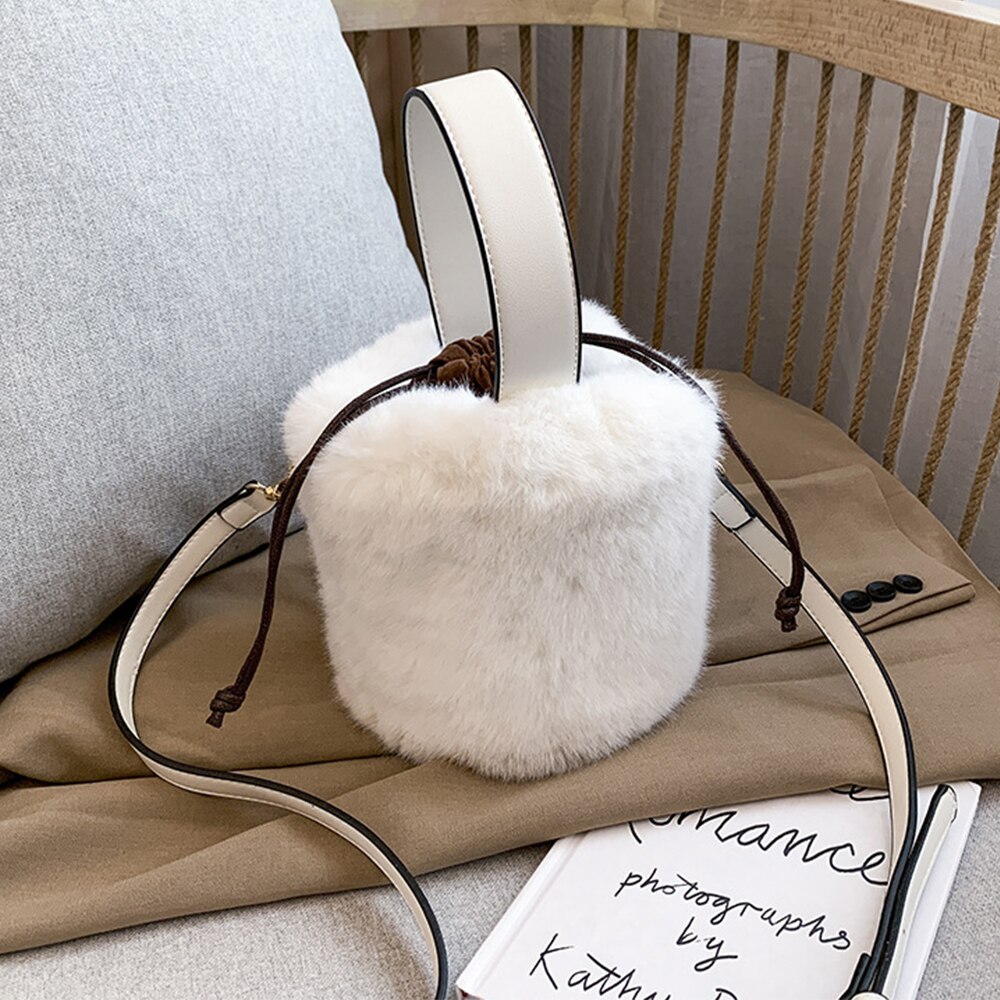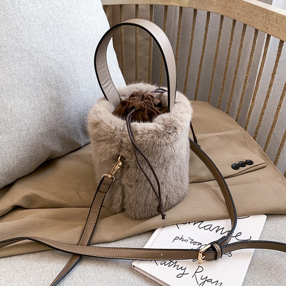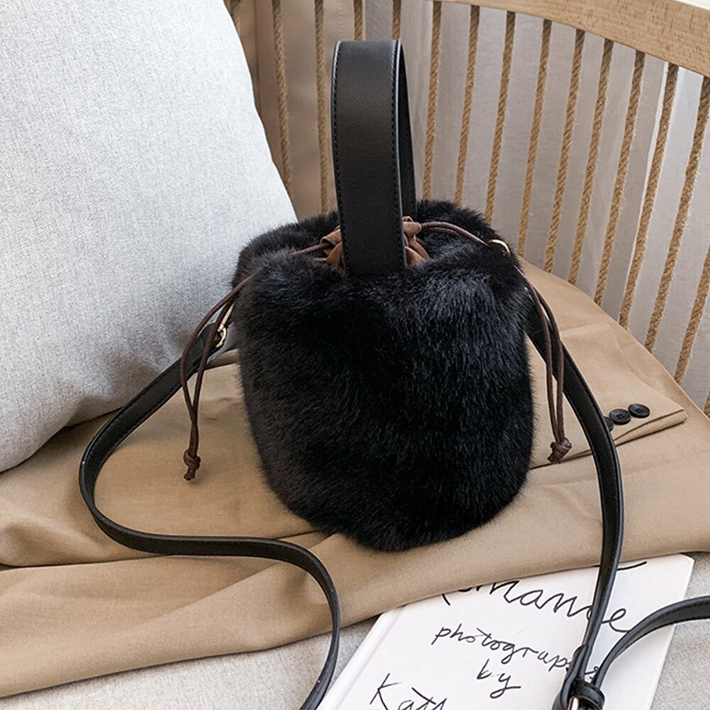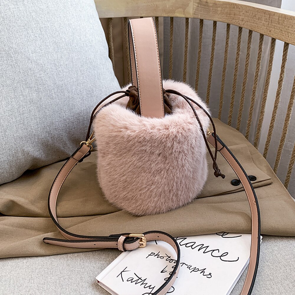 Un petit sac seau en peluche pour femme alliant élégance et douceur