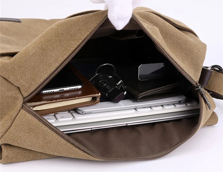 Notre sac à bandoulière en toile canvas vintage pour homme est plus qu’un simple accessoire, c’est un véritable compagnon de chaque jour. Ses dimensions généreuses permettent de stocker aisément un ordinateur portable et d’autres objets personnels, idéal pour le travail ou les loisirs.