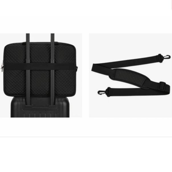 En adoptant ce sac à bandoulière noir pour ordinateur pour femme, vous optez pour un accessoire qui non seulement protège vos appareils électroniques mais qui ajoute une touche chic à votre look quotidien. Ses lignes sobres et son coloris noir intemporel font de ce sac un choix incontournable pour les femmes modernes.