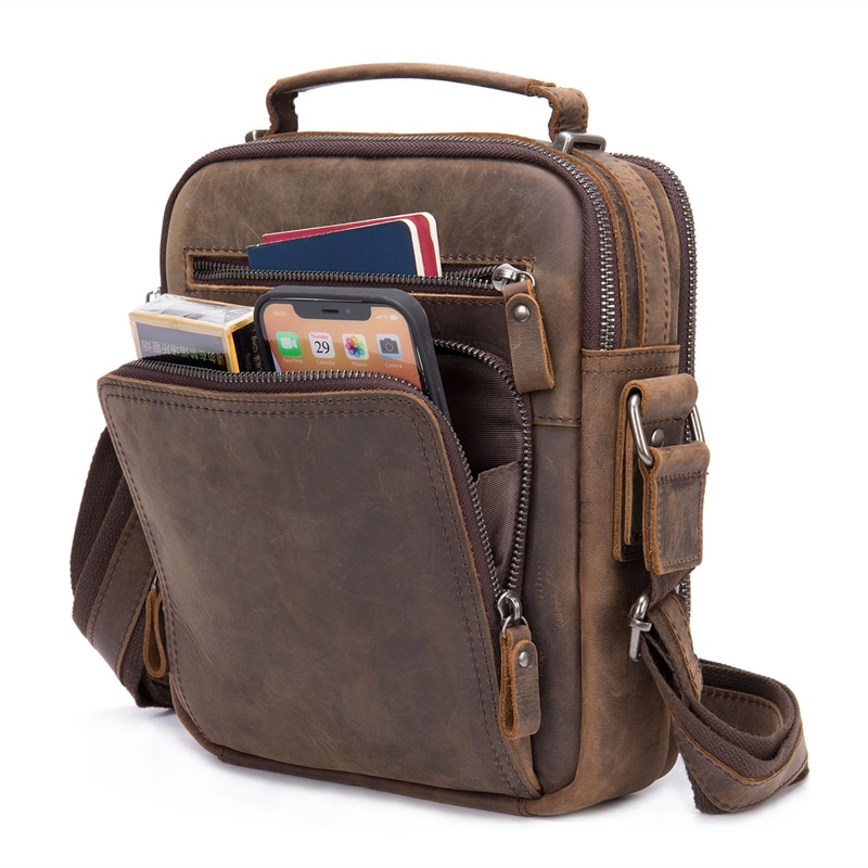 La robustesse de ce sac à bandoulière vintage pour homme est assurée par des matériaux résistants, garantissant une longue durée de vie et un usage intensif au quotidien. Son design ergonomique offre un confort de port inégalé, idéal pour les longues journées en mouvement.