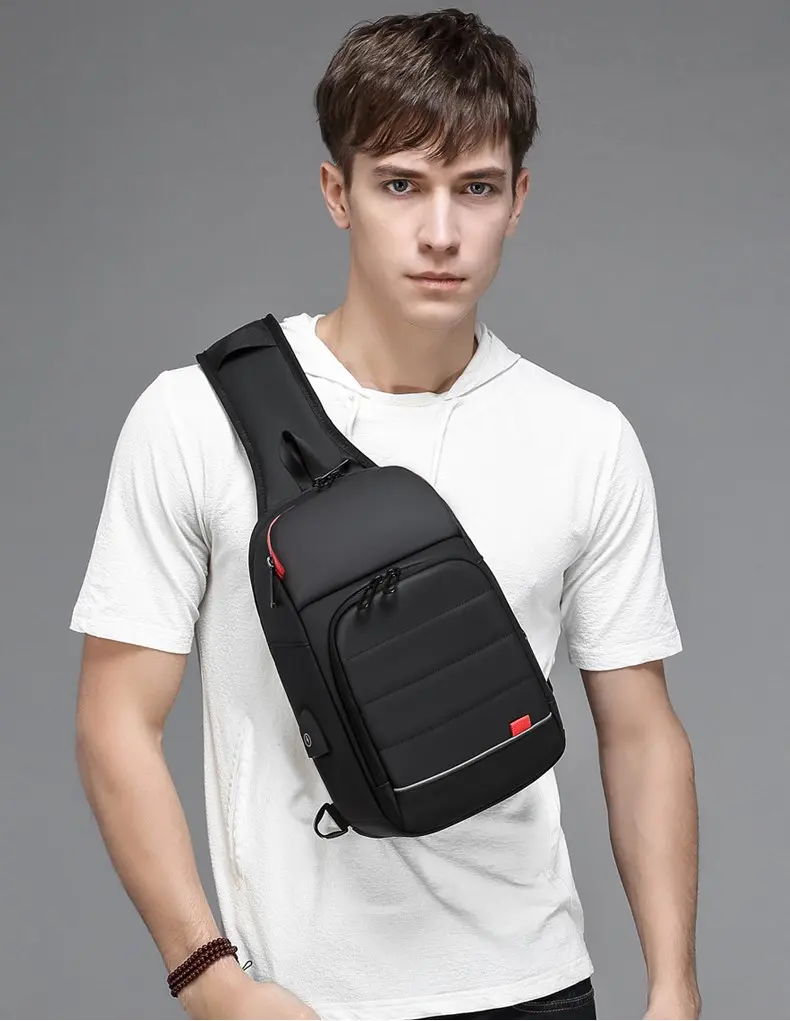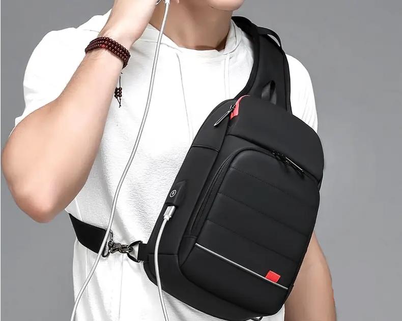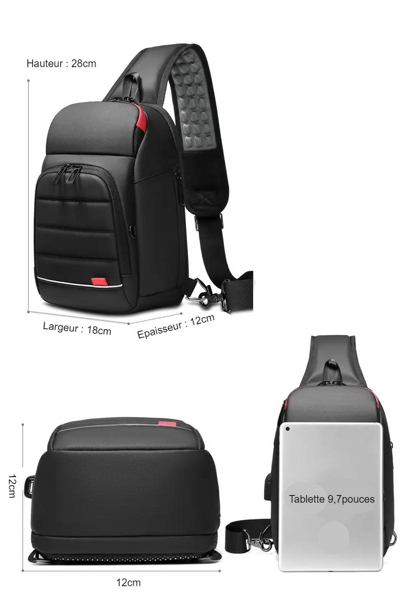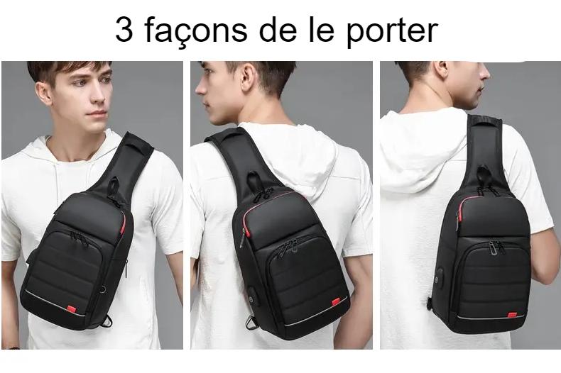 Profitez de la technologie embarquée du sac à dos bandoulière high-tech étanche avec port USB