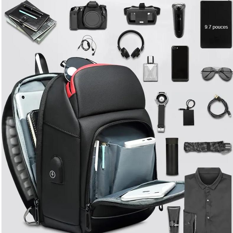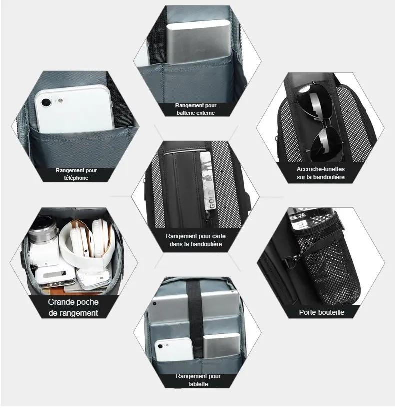 Sac à dos bandoulière high-tech étanche avec port USB pour vos déplacements quotidiens