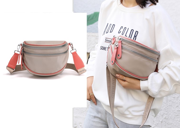 Adoptez le style contemporain avec le sac banane bandoulière double fermeture en Nylon imperméable