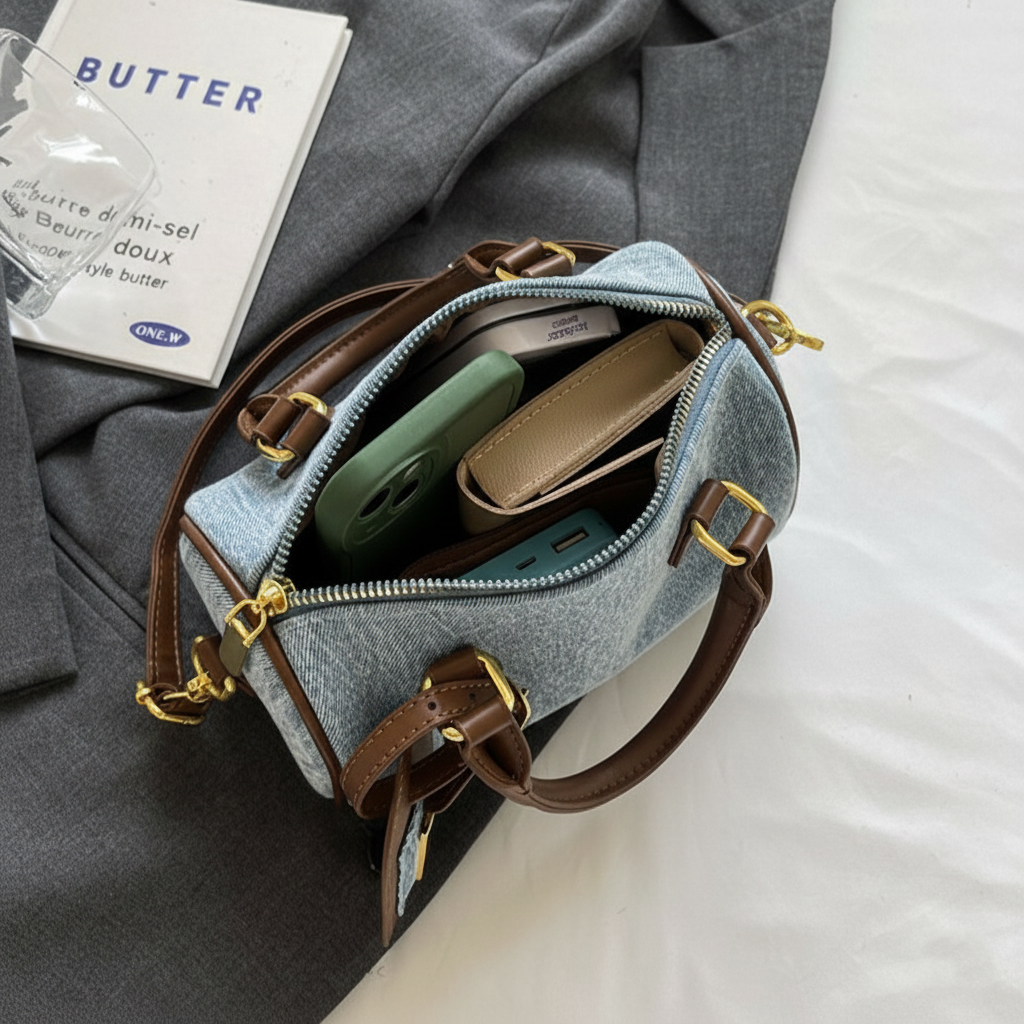 Les atouts fonctionnels du sac bandoulière en denim et cuir synthétique