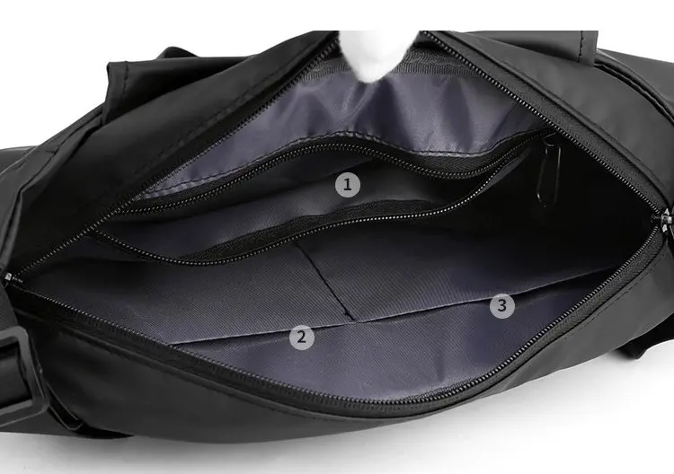 Doté de plusieurs compartiments astucieusement agencés, le sac bandoulière en nylon imperméable pour hommes offre un espace de rangement optimal. Vous pourrez aisément y glisser votre portefeuille, téléphone, clés et autres accessoires indispensables à votre journée.