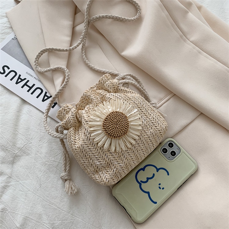 Optez pour l’élégance raffinée du sac en paille avec fleur de tournesol